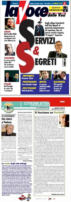 Segnaliamo che il mensile “LA VOCE delle Voci”, in vendita in tutte le edicole soprattutto nei capoluoghi d’Italia (a seguire l'elenco delle edicole della città e della provincia di Padova - 800 912 836 è il numero verde per sapere in quali altre edicole è in vendita la rivista), nel numero di FEBBRAIO 2010, ora in distribuzione, riporta, a pagina 3 dell'inserto "VOCI", tra i tanti interessanti articoli, anche la nostra consueta rubrica fissa curata dall'ufficio stampa della nostra Associazione “CITTADINI ATTIVI per la Democrazia e la Giustizia”.